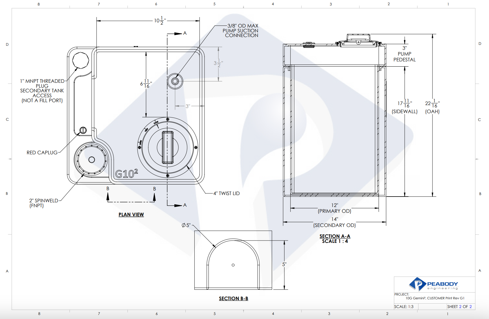 10 Gallon Peabody Engineering Gemini Square Dual Containment Tank 1.9 SG (MPN: 01-30044)