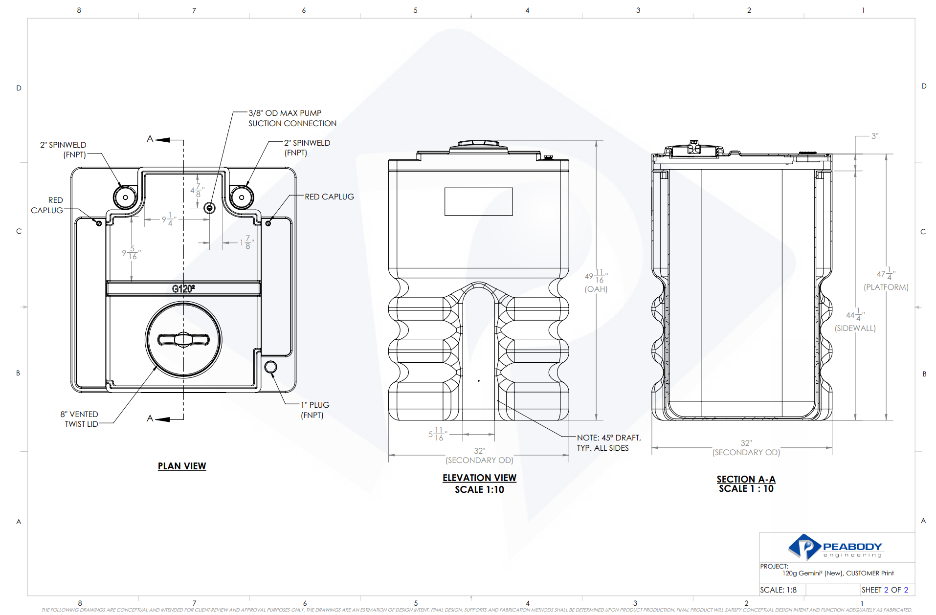 Compact Square Footprint – Provides 22% more storage capacity per footprint compared to cylindrical tanks