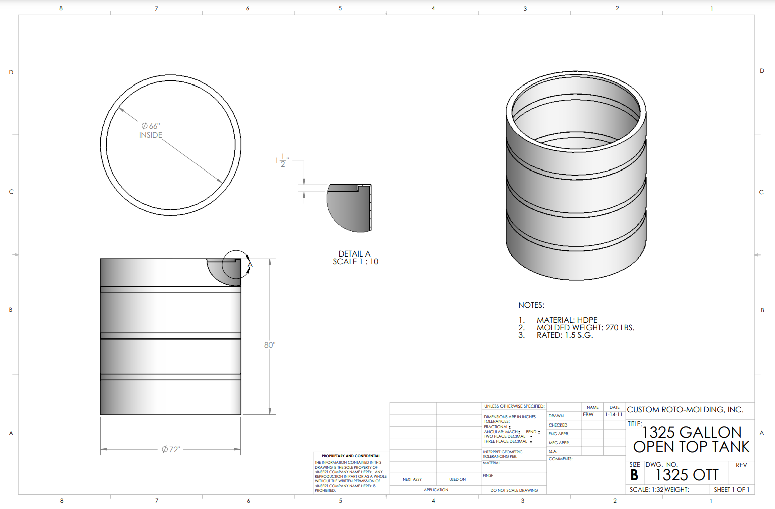 1325 Gallon Custom Roto-Mold Plastic Open Top Tank (MPN 1325 OTT)