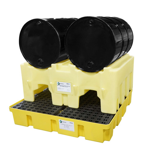 - Holds two (2) 55-gallon or 30-gallon drums side by side