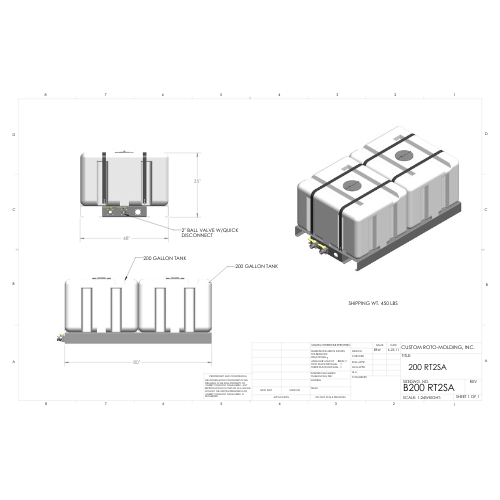 The 200 Gallon Rectangular Tank with Dual Skid Assembly (Part #200RT2SA) is a durable, high-performance liquid storage solution engineered for agricultural, industrial, and commercial environments. Featuring a dual skid base, this tank provides added structural support and greater surface stability—making it a dependable choice for both stationary setups and transportable applications.