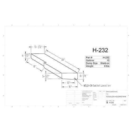 The Custom Roto-Mold 10 Gallon RV Holding Tank (Part No. H-232) offers a compact, low-profile solution for water or waste containment in mobile applications. Perfect for RVs, campers, trailers, vans, and marine use, this tank is designed to fit tight installation spaces without compromising durability.