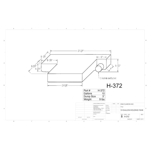 The Custom Roto-Mold 10 Gallon RV Holding Tank (Part# H-372) is a compact, durable solution for water or waste storage in RVs, campers, vans, and other mobile or compact installations.