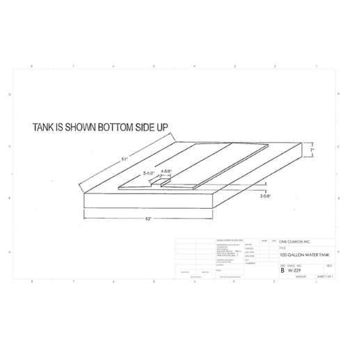 The Custom Roto-Mold 100 Gallon Marine Water Tank (Part# MW-229) is designed for mobile and marine potable water storage. Its extra-wide, ultra-low-profile footprint is ideal for shallow compartments and tight vertical clearances in boats, pontoons, and other marine setups.