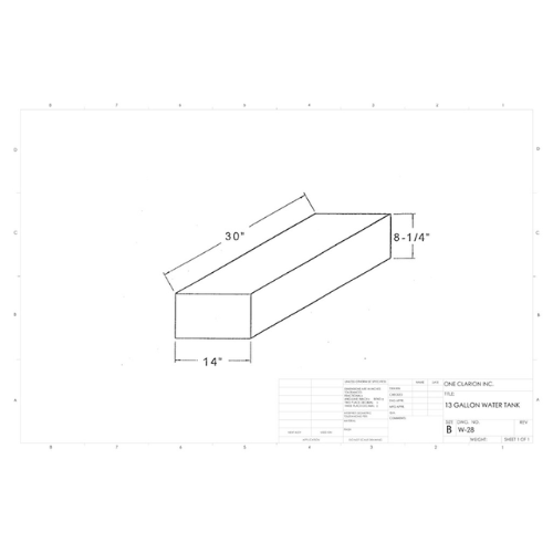 The Custom Roto-Mold 13 Gallon Marine Water Tank (Part# MW-28) is designed for compact potable water storage in marine and mobile environments. With a slim, low-profile footprint, it fits easily into tight space to space areas such as under benches, within compartments, or behind bulkheads in small boats and utility trailers.