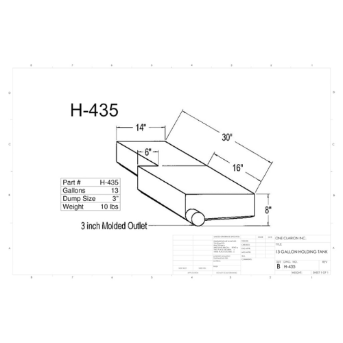 The Custom Roto-Mold 13 Gallon RV Holding Tank (Part# H-435) is engineered to meet the requirements of mobile holding storage applications in RVs, trailers, campers, and compact mobile units. This tank is manufactured with seamless, rotationally molded construction to deliver long-lasting durability and reliable protection against cracks, chips, and structural failure.