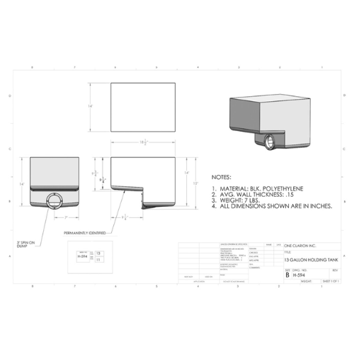 The Custom Roto-Mold 13 Gallon RV Holding Tank (Part# H-594) is engineered to meet the requirements of mobile holding storage applications, making it ideal for RVs, campers, food trucks, tiny homes, and other mobile or off-grid systems.