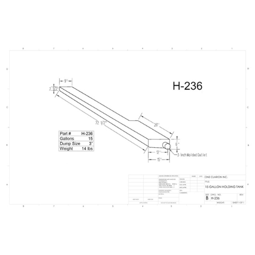 The Custom Roto-Mold 15 Gallon RV Holding Tank (Part No. H-236) is a slim, elongated tank designed for mobile water and waste storage in low-clearance installations. Ideal for RVs, trailers, food trucks, and custom vehicles, this tank delivers dependable performance where length is available but height is restricted.