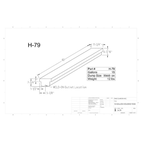 With a height of just 7.25 inches and an overall length of 60 inches, the H-79 (OR) offers a 15-gallon capacity in a compact, space-saving footprint—ideal for installations requiring low vertical clearance and long, narrow compartments.