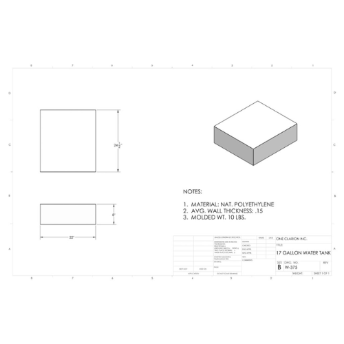 The Custom Roto-Mold 17 Gallon RV Water Tank (Part# W-375) is expertly designed for compact mobile water storage applications. Manufactured using rotationally molded polyethylene resin, this tank features a seamless, durable construction suitable for potable water use.
