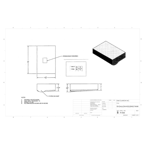The Custom Roto-Mold 18 Gallon RV Holding Tank (Part# H-566) is engineered to meet the requirements of mobile liquid storage applications in RVs, campers, trailers, and portable sanitation setups.