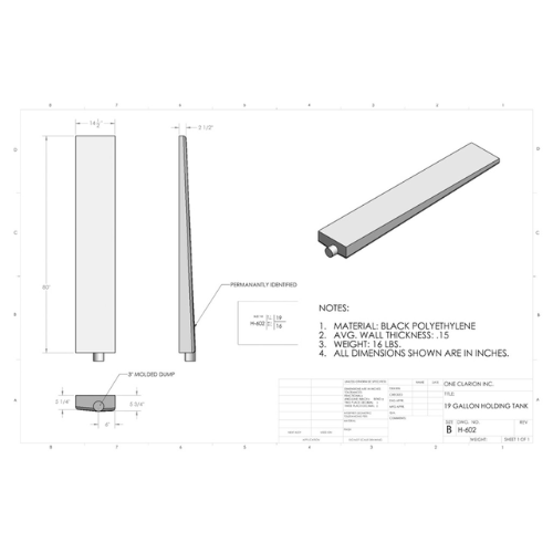 The Custom Roto-Mold 19 Gallon RV Holding Tank (Part# H-602) is expertly engineered to serve a wide range of mobile holding tank applications, including RVs, camper vans, concession trailers, and compact off-grid systems.