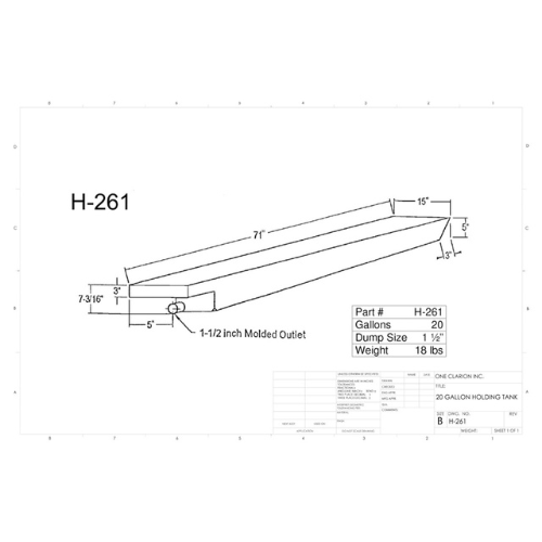 The Custom Roto-Mold 20 Gallon RV Holding Tank (Part No. H-261) is a compact, durable solution for fresh, grey, or black water containment in mobile environments. Designed to meet the needs of RVs, campers, trailers, and marine vehicles, this tank offers a slim profile with long-span dimensions for tight and shallow installation spaces.