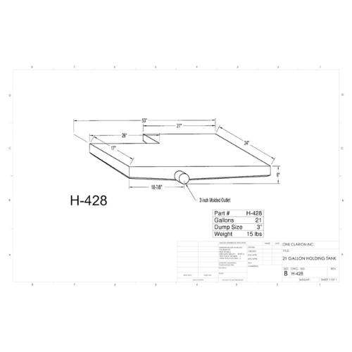 The Custom Roto-Mold 21 Gallon RV Holding Tank (Part# H-428) is engineered to meet the requirements of mobile holding storage applications in RVs, campers, trailers, and mobile units. Its seamless, rotationally molded construction offers excellent durability, resisting cracks, chips, and ruptures even in rugged conditions.