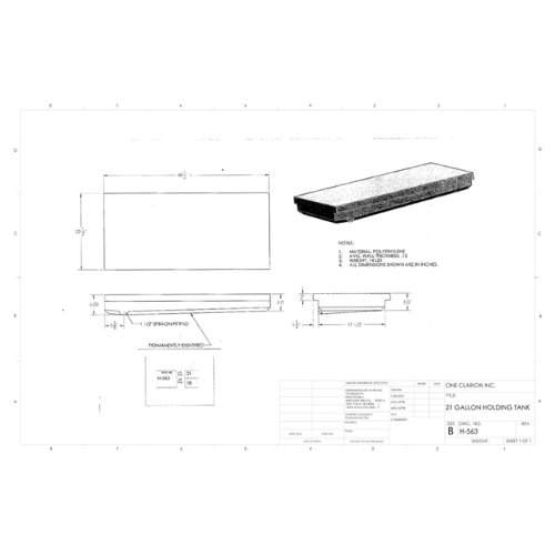 The Custom Roto-Mold 21 Gallon RV Holding Tank (Part# H-563) is engineered to meet the requirements of mobile liquid storage for RVs, trailers, campers, and portable sanitation systems.