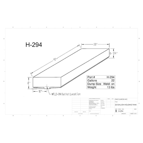 The Custom Roto-Mold 22 Gallon RV Holding Tank (Part #H-294) is built for reliable use in mobile liquid storage applications, including RVs, trailers, vans, food trucks, and marine systems.