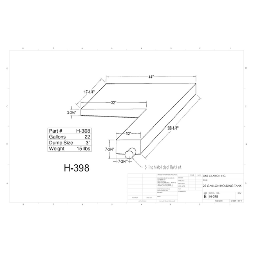 The Custom Roto-Mold 22 Gallon RV Holding Tank (Part# H-398) is designed to support compact mobile liquid storage in RVs, travel trailers, van builds, food trucks, and marine vessels.