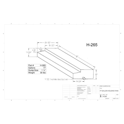 The Custom Roto-Mold 77 Gallon RV Holding Tank (Part No. H-265 [OR]) is a high-capacity, heavy-duty solution engineered to support demanding mobile water and waste storage applications. Ideal for RVs, trailers, marine vessels, and mobile food units, this tank combines generous volume with exceptional structural reliability.