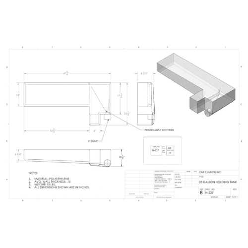 The Custom Roto-Mold 23 Gallon RV Holding Tank (Part# H-537) is designed to deliver dependable performance in RVs, trailers, campers, and mobile sanitation setups that require compact and durable liquid storage solutions.