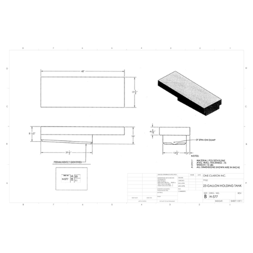 The Custom Roto-Mold 23 Gallon RV Holding Tank (Part# H-577) is engineered to meet the demands of mobile liquid storage in RVs, trailers, campers, and portable sanitation systems.