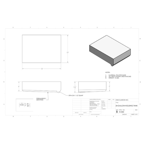 The Custom Roto-Mold 24 Gallon RV Holding Tank (Part# H-550) is purpose-built to deliver dependable performance in mobile waste and water storage applications, including RVs, travel trailers, campers, and portable sanitation systems.