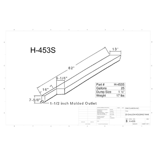 The Custom Roto-Mold 25 Gallon RV Holding Tank (Part# H-453S) is designed to meet the essential needs of RV, camper, trailer, and mobile vehicle holding tank systems. With its slim, elongated profile, it’s ideal for installation in confined underbody or side compartment areas.