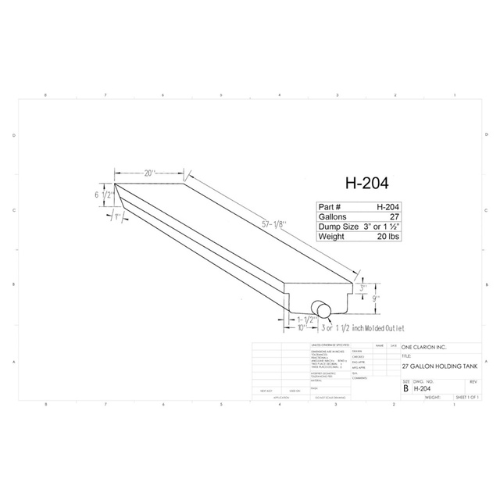 The Custom Roto-Mold 27 Gallon RV Holding Tank (Part No. H-204) offers a space-efficient and highly durable solution for mobile water and waste storage needs. Designed for use in RVs, trailers, marine vessels, and food trucks, this mid-size tank provides reliable performance in demanding on-the-go environments.