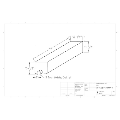 The Custom Roto-Mold 27 Gallon RV Holding Tank (Part #H-21) is expertly engineered to meet the demands of mobile liquid storage for RVs, trailers, campers, and other mobile applications. Its compact size and low-profile design make it ideal for installations in tight or restricted areas.