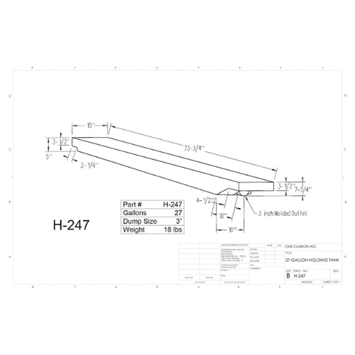 The Custom Roto-Mold 27 Gallon RV Holding Tank (Part No. H-247) is expertly crafted to provide dependable water or waste storage in mobile applications such as RVs, trailers, vans, food trucks, and marine setups. With a long, narrow profile and moderate capacity, this tank is ideal for installations where space is limited but durability is a must.