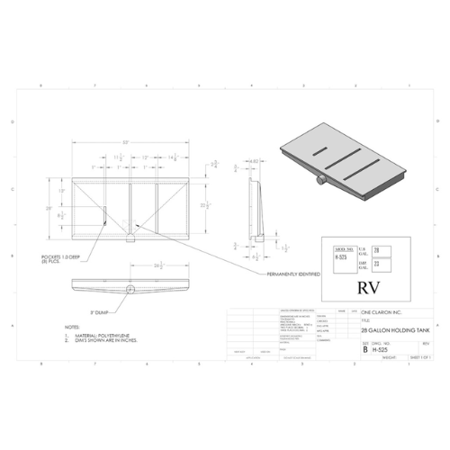 The Custom Roto-Mold 28 Gallon RV Holding Tank (Part# H-525) is designed to meet the demands of compact mobile liquid storage in RVs, campers, trailers, and portable sanitation setups.
