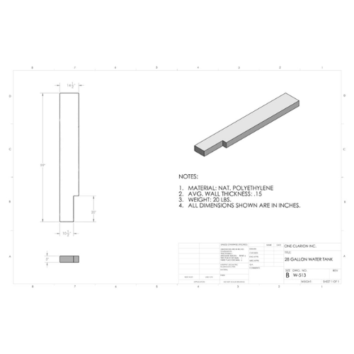 The Custom Roto-Mold 28 Gallon RV Water Tank (Part# W-513) is engineered to meet the demands of mobile potable water storage across a wide range of compact and mobile living environments. Constructed using rotationally molded polyethylene resin, this tank offers long-term durability and safe, FDA-compliant water performance.