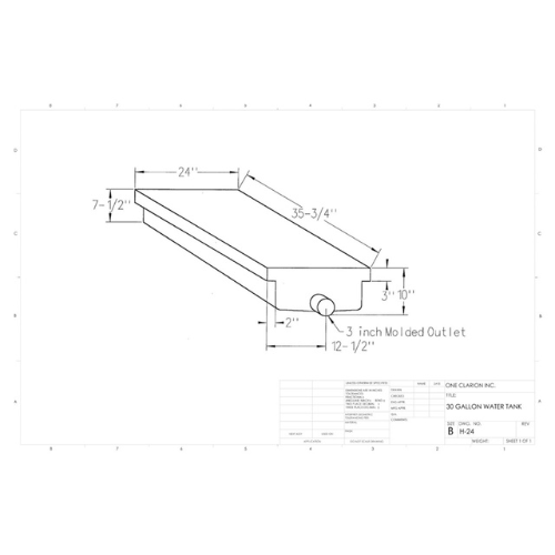 The Custom Roto-Mold 30 Gallon RV Holding Tank (Part #H-24) is engineered to provide a reliable and space-efficient solution for mobile liquid storage in RVs, campers, trailers, and other mobile applications. With its low-profile rectangular design, this tank is ideal for installations where space is limited but performance is critical.