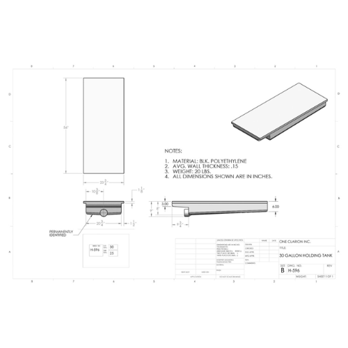 The Custom Roto-Mold 30 Gallon RV Holding Tank (Part# H-596) is expertly designed to meet the demands of mobile storage applications, including RVs, camper vans, food trucks, and tiny homes. Whether used for potable water, greywater, or blackwater, this tank provides reliable performance and long-term durability.