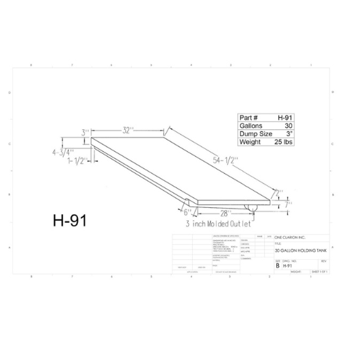 The Custom Roto-Mold 30 Gallon RV Holding Tank (Part No. H-91 (OR)) is expertly designed to meet the unique storage needs of mobile applications, offering reliable containment for potable water, grey water, or black water systems. Its wide, flat profile and durable design make it ideal for underfloor or low-clearance installations in RVs, trailers, campers, food trucks, and marine vessels.