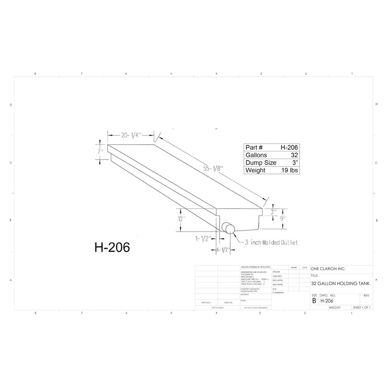 The Custom Roto-Mold 32 Gallon RV Holding Tank (Part No. H-206) is expertly engineered to provide dependable fluid containment for a wide variety of mobile applications, including RVs, travel trailers, food trucks, and marine systems. Its low-profile, space-conscious design makes it ideal for installations with limited vertical clearance.