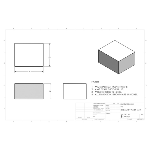 The Custom Roto-Mold 32 Gallon RV Water Tank (Part# W-524) is engineered to meet the requirements of mobile potable water storage in a wide range of compact and mobile applications. Crafted from rotationally molded polyethylene resin, this tank is designed for long-lasting performance and safe, potable water use.