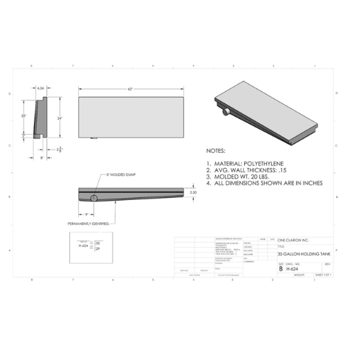 35 Gallon Custom Roto-Mold RV Holding Tank (MPN: H-624)