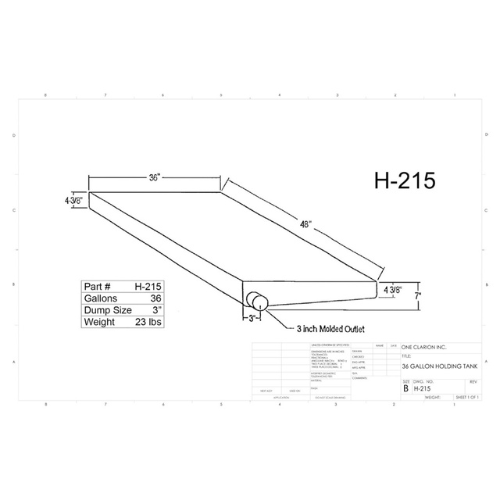 The Custom Roto-Mold 36 Gallon RV Holding Tank (Part No. H-215) is expertly engineered to meet the tough demands of mobile water and waste containment. Whether you're outfitting an RV, camper, trailer, or food truck, this tank delivers exceptional performance in shallow spaces where vertical clearance is tight but volume capacity is essential.