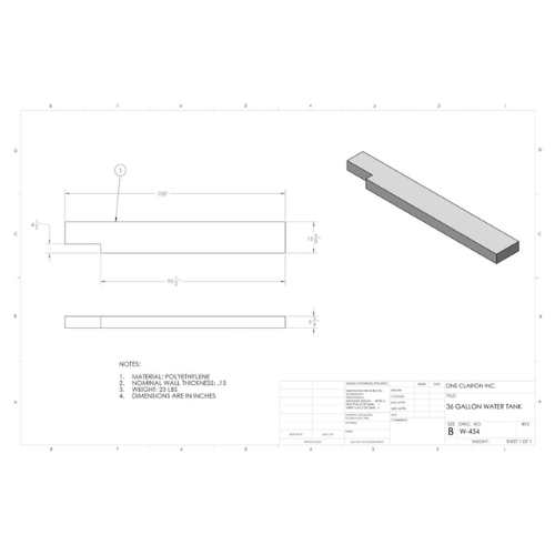 The Custom Roto-Mold 36 Gallon RV Water Tank (Part# W-454) is engineered to meet the requirements of mobile water storage applications. Manufactured from rotationally molded polyethylene resin, this tank is made for potable water use.