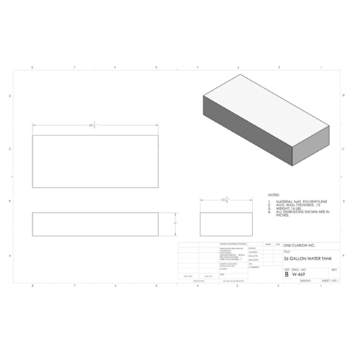 The Custom Roto-Mold 36 Gallon RV Water Tank (Part# W-469) is engineered to meet the demands of mobile potable water storage in space-conscious environments. Constructed using rotationally molded polyethylene resin, this tank is built for long-term durability and safe water storage on the go.