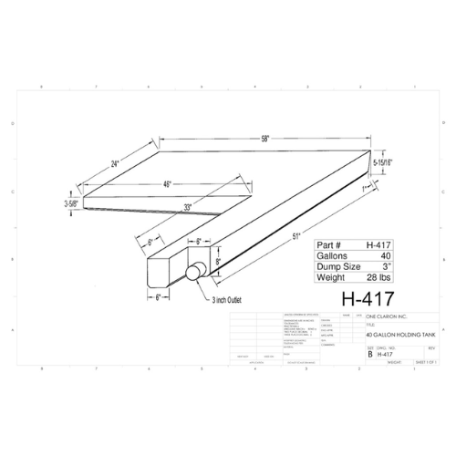The Custom Roto-Mold 40 Gallon RV Holding Tank (Part# H-417) is engineered to meet the requirements of mobile holding storage applications.