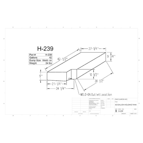 The Custom Roto-Mold 42 Gallon RV Holding Tank (Part No. H-239) delivers a dependable mid-capacity solution for mobile water or waste containment. Whether you're outfitting an RV, camper, trailer, or food truck, this tank offers a durable and efficient storage option with a compact rectangular footprint.