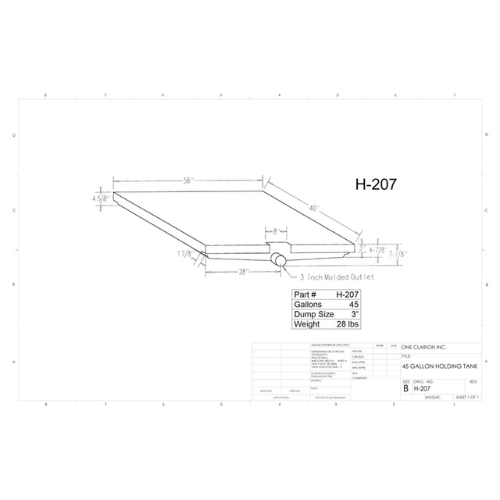 The Custom Roto-Mold 45 Gallon RV Holding Tank (Part No. H-207) is designed to meet the demanding requirements of mobile waste and water storage applications. With a broad and low-profile footprint, this tank is ideal for underfloor installations in RVs, campers, trailers, and mobile food units where vertical clearance is limited, but high capacity is needed.