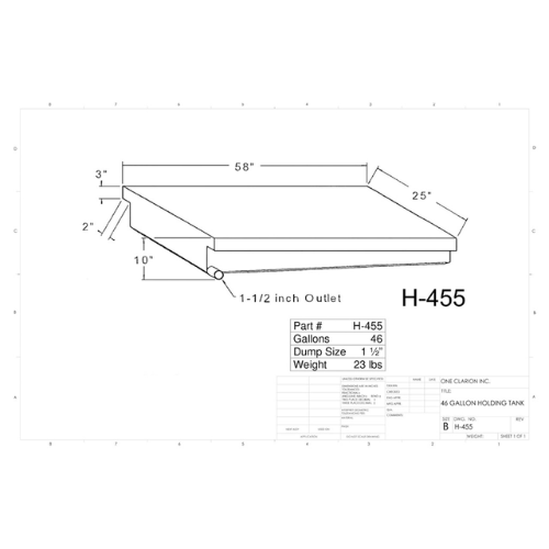 The Custom Roto-Mold 46 Gallon RV Holding Tank (Part# H-455) is built to meet the high-performance demands of mobile wastewater or fresh water storage across RVs, travel trailers, campers, and marine units. Its mid-profile rectangular shape makes it versatile for a wide variety of installation scenarios.