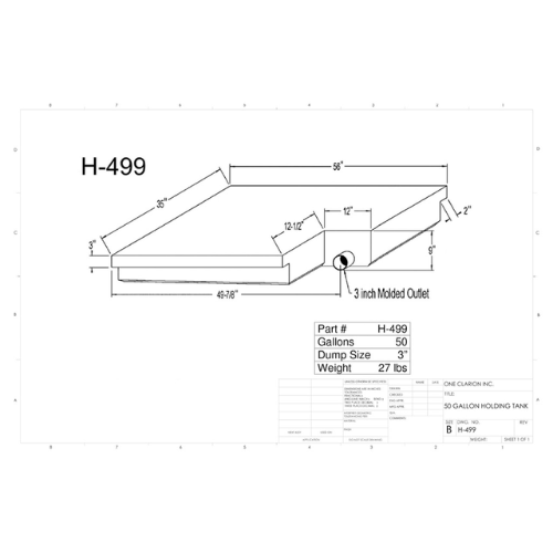 The Custom Roto-Mold 50 Gallon RV Holding Tank (Part# H-499) is designed to meet the high-performance demands of mobile water and waste storage in RVs, trailers, campers, and marine vessels.
