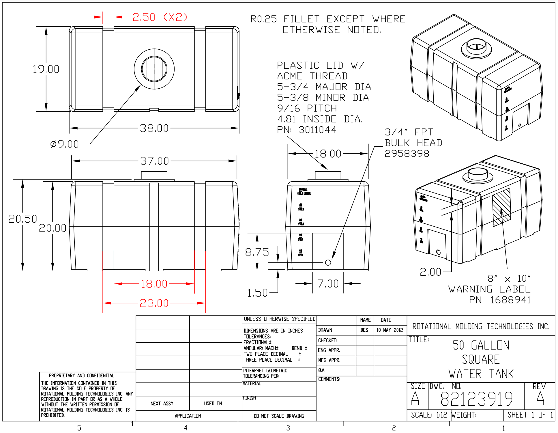 • Convenient Access: Features a 5" threaded vented lid for easy filling and a 3/4" NPT bulkhead fitting for efficient draining.