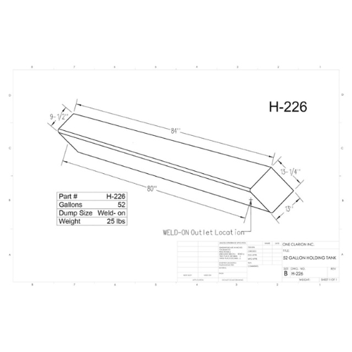 The Custom Roto-Mold 52 Gallon RV Holding Tank (Part No. H-226) is engineered for dependable performance in mobile waste or water storage systems. Ideal for RVs, campers, trailers, and custom vehicle builds, this tank’s elongated profile makes it perfect for installations where length is available but space is limited in height or width.