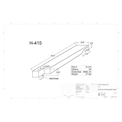 The Custom Roto-Mold 60 Gallon RV Holding Tank (Part# H-415 [OR]) is expertly crafted to fulfill the demanding requirements of mobile liquid storage in RVs, trailers, boats, and mobile service units.