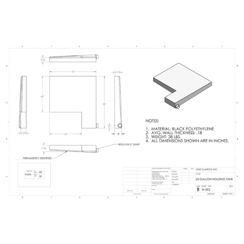 The Custom Roto-Mold 60 Gallon RV Holding Tank (Part# H-593) is expertly designed to support mobile sanitation systems, including RVs, travel trailers, food trucks, and off-grid structures requiring reliable water or wastewater storage.