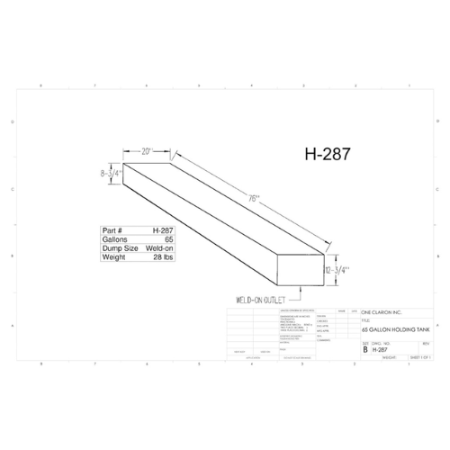 The Custom Roto-Mold 65 Gallon RV Holding Tank (Part #H-287) is purpose-built for mobile holding applications, including RVs, trailers, camper conversions, food trucks, and marine systems.